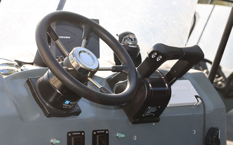 Η µεγάλη κονσόλα µπορεί να φιλοξενήσει τα όργανα του κινητήρα αλλά και τα επιπλέον ηλεκτρονικά βοηθήµατα ναυσιπλοΐας τα οποία θα παραµείνουν προστατευµένα πίσω από το ψηλό αλεξήνεµο.