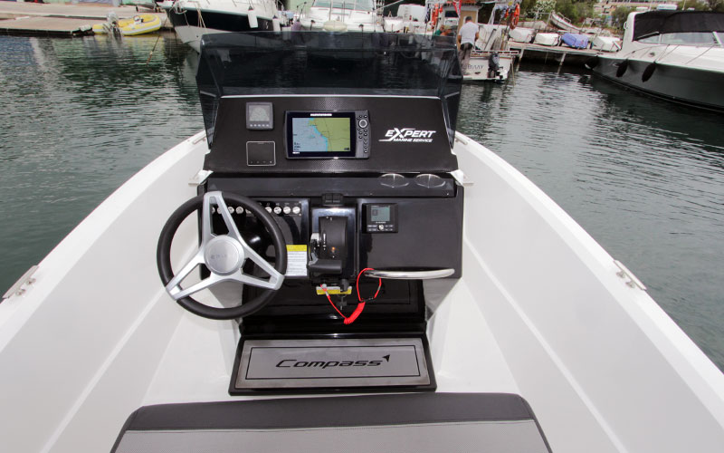 Μέγιστη ταχύτητα μετρήσαμε τους 36,5 κόμβους, με κατανάλωση πετρελαίου 0,97 λτ/νμ.. Η στιβαρή κατασκευή του Compass, ανταπεξέρχεται άψογα στο βάρος του κινητήρα με την πλεύση του να παραμένει ευθύγραμμη και απόλυτα ικανοποιητική.