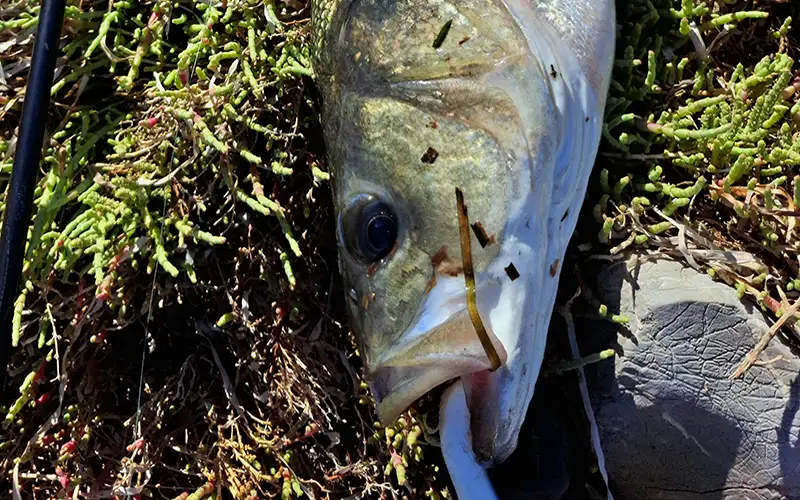 Ξαφνικά μια μεγάλη μπάλα από αθερίνες ανέβηκε προς το μέρος μου και από κάτω φάνηκαν δύο καθόλου ευκαταφρόνητου μεγέθους λαβράκια.