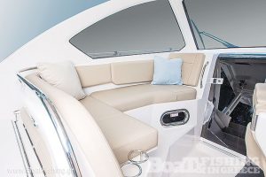 Η φινιρισµένη µε πολύ υψηλής ποιότητας υλικών καµπίνα προσφέρει όλες τις ανέσεις για πολυήµερες διανυκτερεύσεις σε µια τετραµελή οικογένεια. Το κατάστρωµα είναι µελετηµένο είτε σκοπός είναι το ψάρεµα είτε η εξόρµηση και διασκέδαση µε φίλους. Η πλήρης προστασία από τον ήλιο τους θερινούς µήνες και τις άσχηµες καιρικές συνθήκες του χειµώνα παρέχεται χάρη στο νέο παρπρίζ που ενωµένο µε το µεγάλο T-Top περικλείει το κεντρικό κατάστρωµα.