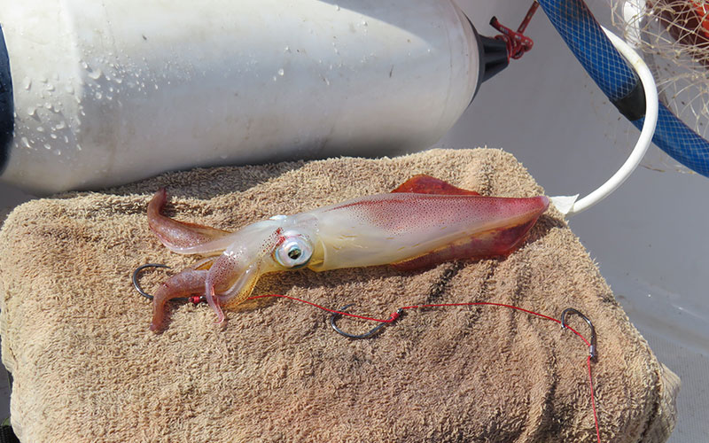 Το ψάρεµά µας ξεκινά νωρίς το πρωί για να πιάσουμε τα καλαµάρια που µας χρειάζονται για δόλωµα. Κρατάμε µόνο τα µέτρια και µεγάλα καλαµάρια σε ένα δοχείο συντήρησης ζωντανού. Κατόπιν, κατευθυνόµαστε στα σηµεία όπου έχουµε τσεκάρει από προηγούµενα ψαρέµατά µας ότι υπάρχουν σφυρίδες. Ελέγχουµε αν πράγµατι τα ψάρια είναι έξω από τα θαλάµια τους. Αν είναι πιο ψηλά από το βυθό, σηµαίνει ότι τρώνε κιόλας, οπότε θα τσιµπήσουν ευκολότερα.