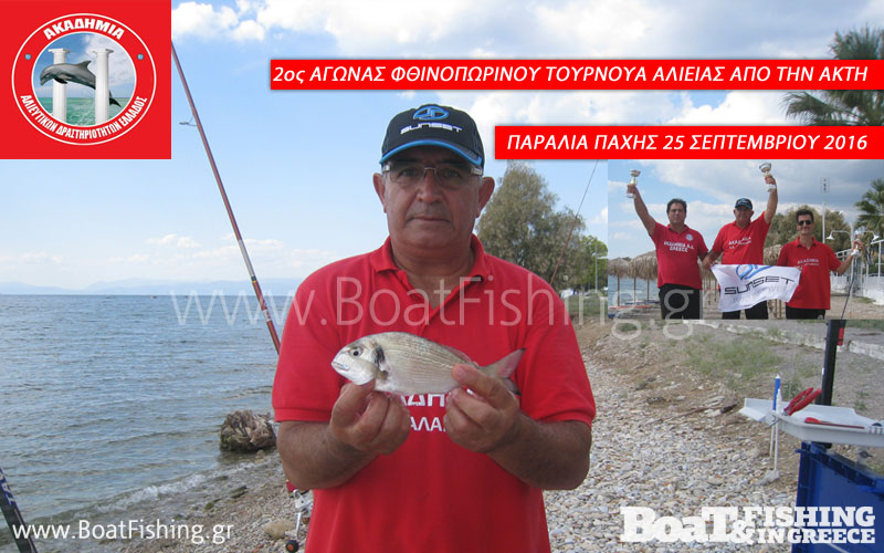 Την Κυριακή 25 Σεπτεμβρίου 2016 πραγματοποιήθηκε ο 2ος αγώνας του Φθινοπωρινού τουρνουά αλιειας από την ακτή που διοργανώνει η ΑΚΑΔΗΜΙΑ ΑΛΕΙΥΤΙΚΩΝ ΔΡΑΣΤΗΡΙΟΤΗΤΩΝ ΕΛΛΑΔΟΣ. Μεγάλο έπαθλο του τουρνουά είναι η ...