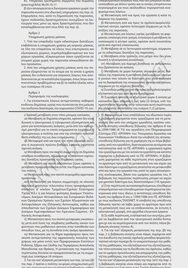 ΠΙΟ ΣΥΓΚΕΚΡΙΜΕΝΑ όπως αναφέρεται στο ΑΡΘΡΟ 3 – ΠΕΡΙΟΡΙΣΜΟΣ ΤΗΣ ΚΥΚΛΟΦΟΡΙΑΣ επιτρέπονται οι εξής μετακινήσεις πολιτών:
