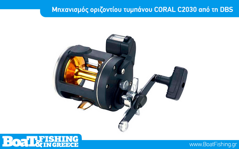 Μηχανισμός συρτής με σώμα από γραφίτη και μπομπίνα αλουμινίου Coral C2030 από την DBS Fishing. Διαθέτει κατανομέα και μετρητή πετονιάς για να μην σας προβληματίζει η τακτοποίηση του υλικού στη μπομπίνα και το βάθος που βρίσκεται η αρματωσιά σας ανά πάσα στιγμή. Τα φρένα του είναι αστεροειδή (star drag), με δύναμη 8kg. H σχέση μετάδοσής του είναι 3.8:1, διαθέτει 3 ανοξείδωτα ρουλεμάν συν ένα μονόδρομο και το βάρος του 488gr.