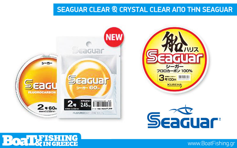 Η δηµοφιλής SEAGUAR των 100 µέτρων τώρα και σε νέες συσκευασίες των 60 µέτρων, σε όλα τα νούµερα. Η συσκευασία των 100 µέτρων είναι διαθέσιµη σε διατοµές από 0,23 έως και 0,57 mm (δεν υπάρχει πια µόνο στα 0,31 mm). Επίσης, η νέα συσκευασία των 60 µέτρων είναι διαθέσιµη σε νούµερα από 0,148 έως και 0,52 mm. Οι πετονιές είναι εξοπλισµένες µε το καινοτόµο σύστηµα bungee (ελαστικό δαχτυλίδι) για συγκράτηση της πετονιάς και συνάµα την ευκολότερη και ασφαλέστερη χρήση και φύλαξη.