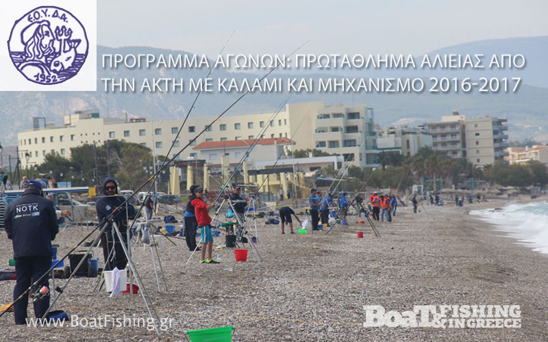 Πρόγραμμα Αγώνων: Πρωτάθλημα Αλιείας από την ακτή με καλάμι και μηχανισμό 2016-2017