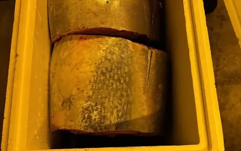 Κατά τον έλεγχο διαπιστώθηκε ότι είχαν αλιευτεί δύο ερυθροί τόνοι, συνολικού βάρους 110 κιλών (χωρίς εντόσθια και αποκεφαλισμένοι), χωρίς την απαιτούμενη άδεια αλιείας, ενώ στη συνέχεια τα ψάρια είχαν πωληθεί παράνομα.