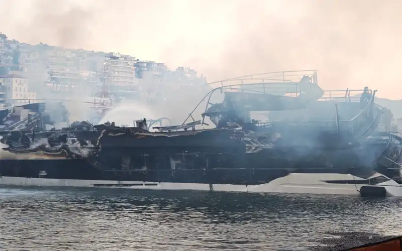 Σύμφωνα με το Λιμενικό, τρία σκάφη βυθίστηκαν, ενώ ένα ακόμη έχει πάρει κλίση από τις φλόγες.